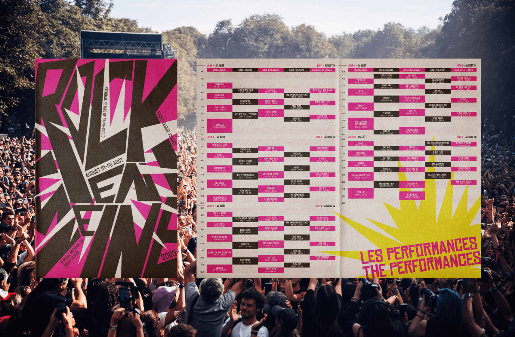 Rock en Seine is a vibrant and lively 5-day outdoor rock festival taking place on the National Estate of Saint-Cloud. Tasked with creating a compelling visual identity for the 2025 edition, this fresh conceptual identity captures the electric atmosphere and proposed theme of all things punk.
